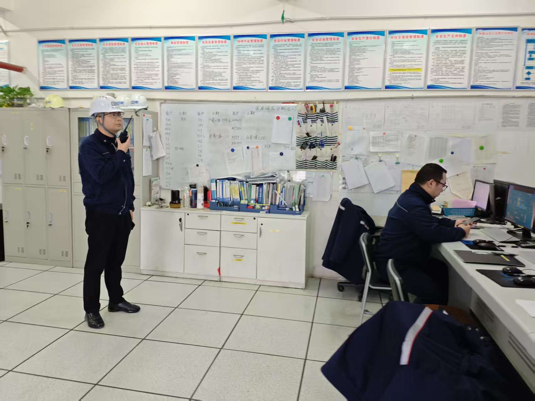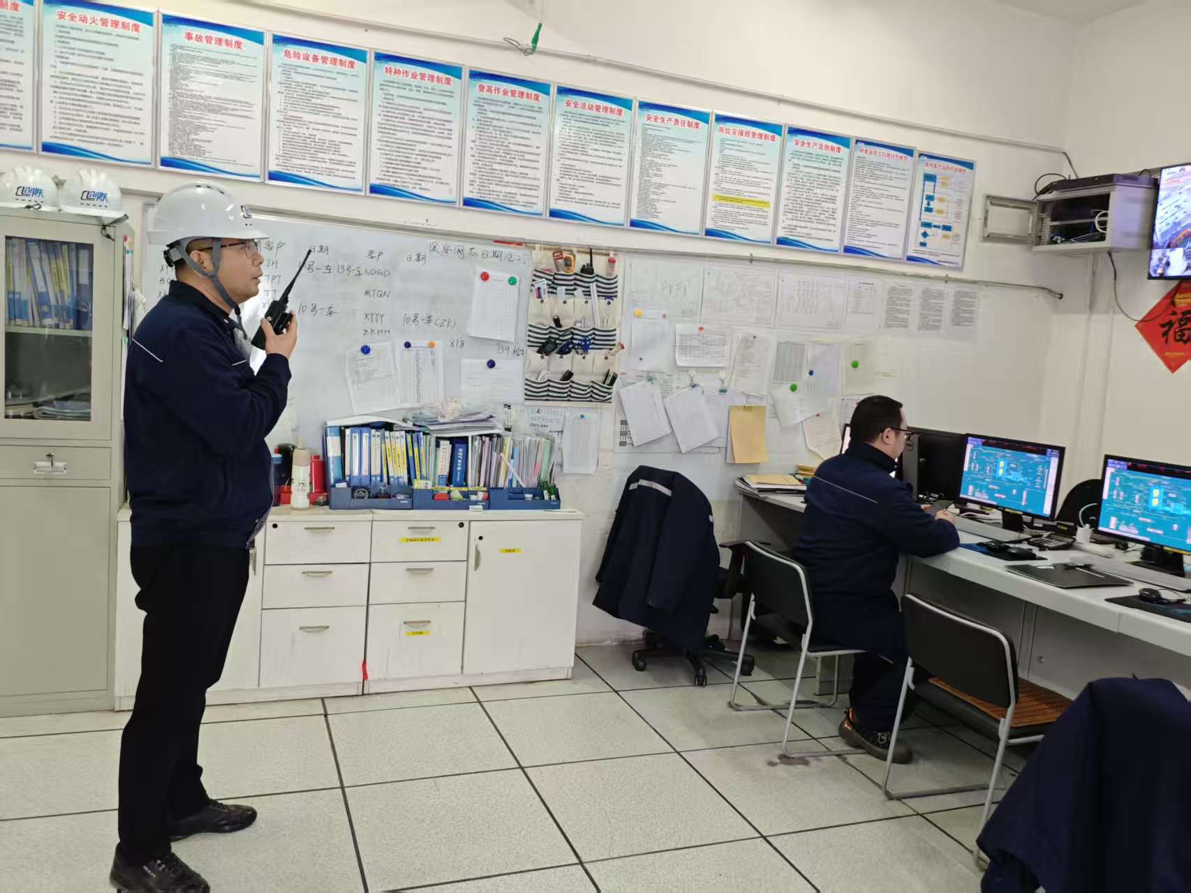 班长崔瑞文立即通知钢瓶充装站:“钢瓶充装班,装置区出现火灾,请立即停止钢瓶充装并疏散至安全区域”